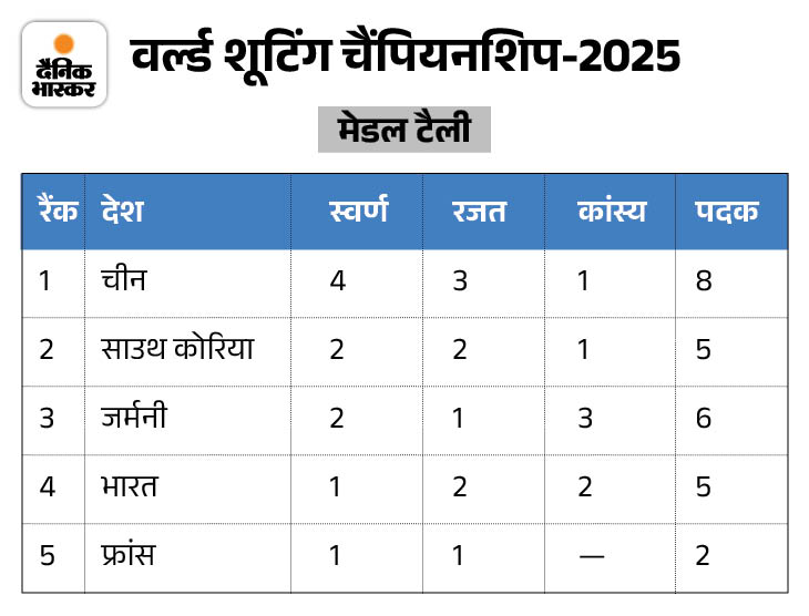 अनीश भनवाला ने वर्ल्ड शूटिंग चैंपियनशिप में सिल्वर जीता: फ्रांस के शूटर को गोल्ड; इंडिया के 5 मेडल हुए, चीन 4 गोल्ड के साथ टॉप पर