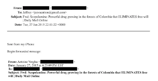 बताया जाता है कि यह ईमेल फ्रांसीसी फैशन फोटोग्राफर एंटोनी वेरग्लास की ओर से आगे भेजा गया था। ईमेल्स में जिस “जॉम्बी फ्लावर” का जिक्र है, वह दरअसल ट्रम्पेट आकार वाले पौधे हैं। फॉरवर्ड किए गए एक मैसेज का शीर्षक था- “स्कोपोलामीन: कोलंबिया के जंगलों में उगने वाली एक शक्तिशाली दवा, जो इंसान की चेतना को खत्म कर देती है।”
