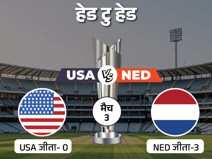 नीदरलैंड को अब तक नहीं हरा सका अमेरिका अमेरिका और नीदरलैंड के बीच अब तक 3 टी-20 खेले गए। सभी में नीदरलैंड को ही जीत मिली। दोनों टीमें वर्ल्ड कप में पहली बार एक दूसरे के सामने होंगी। अमेरिका ने अगर आज का मुकाबला गंवाया तो टीम सुपर-8 स्टेज से बाहर हो जाएगी। वहीं नीदरलैंड हारी तो उनका भी दूसरे राउंड में पहुंचना मुश्किल हो जाएगा।