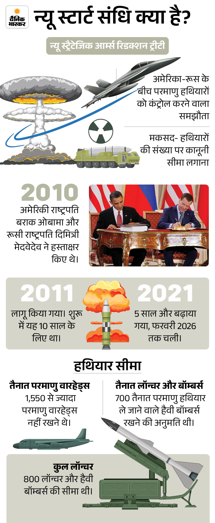 इस संधि के तहत दोनों देशों को अपने परमाणु वारहेड्स को 1,550 तक सीमित रखना था और मिसाइलों और बॉम्बर्स की संख्या पर भी पाबंदी थी। इस संधि में रूस के गैर-रणनीतिक परमाणु हथियारों, जैसे छोटी दूरी के हथियारों को शामिल नहीं किया गया था।