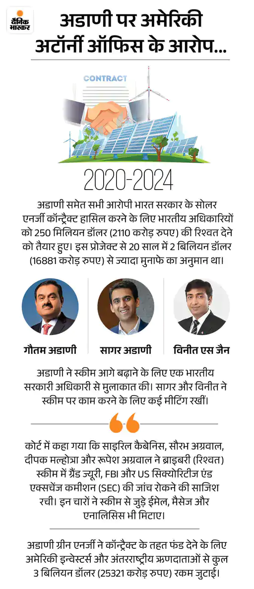 अडाणी ग्रुप पर अमेरिका में 2,029 करोड़ रुपए की रिश्वत देने का आरोप है।