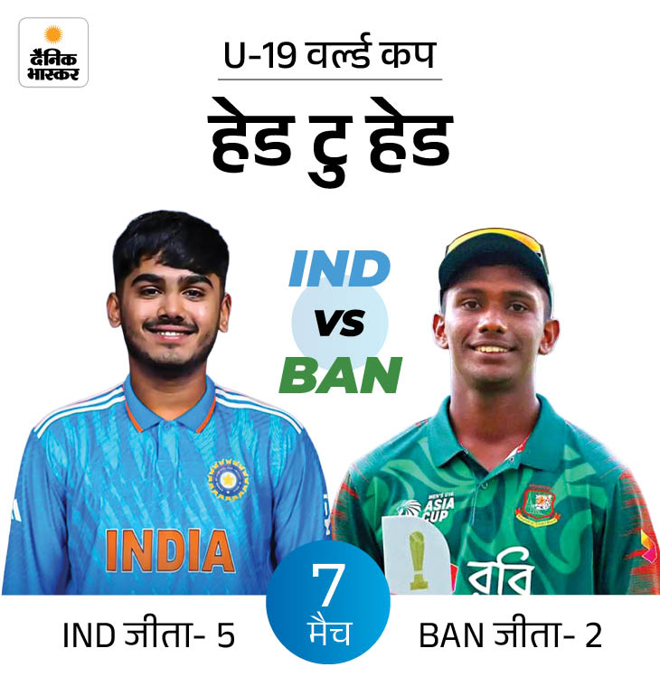 प्रीवियस रिकॉर्ड में भारतीय टीम बेहतर है। अंडर-19 वर्ल्ड कप में भारत ने बांग्लादेश के खिलाफ 70% से ज्यादा मैच जीते हैं। दोनों के बीच अब तक 7 मैच खेले गए हैं, इनमें से 5 भारतीय टीम ने जीते हैं। जबकि, 2 मैच बांग्लादेश के नाम रहे हैं।