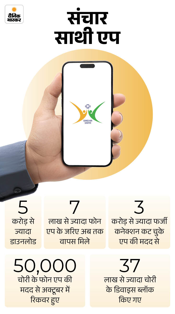 संचार साथी एप सरकार का बनाया साइबर सिक्योरिटी टूल है, जो जनवरी में लॉन्च हुआ था। अभी यह एपल और गूगल प्ले स्टोर पर वॉलंटरी डाउनलोड के लिए उपलब्ध है, लेकिन अब नए फोन पर यह जरूरी होगा। एप यूजर्स को कॉल, मैसेज या व्हाट्सएप चैट रिपोर्ट करने में मदद करेगा। साथ ही IMEI नंबर चेक करके चोरी या खोए फोन को ब्लॉक करेगा।