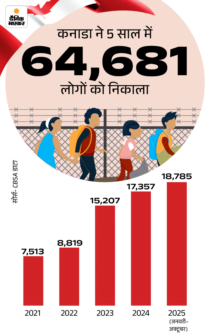 इसके मुताबिक पिछले साल कुल 18,785 लोगों को कनाडा से निकाला गया, जिनमें भारतीय दूसरे नंबर पर हैं। सबसे ज्यादा 3,972 लोग मेक्सिको के थे।