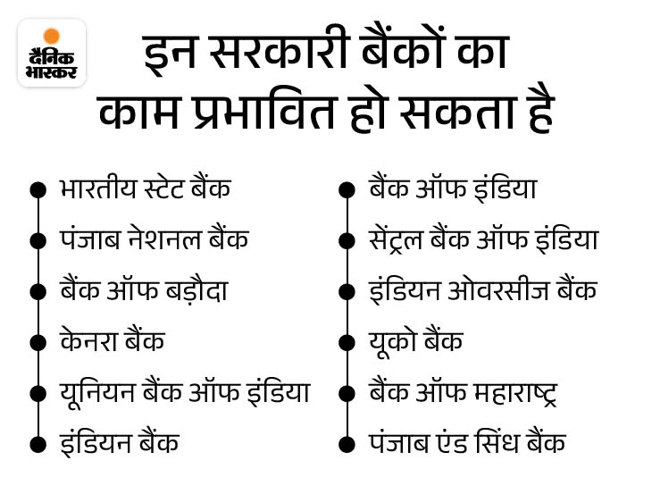 हड़ताल की वजह से बैंकों में कैश ट्रांजैक्शन और चेक क्लियरेंस जैसे काम नहीं होंगे। महीने के चौथे शनिवार( 23 जनवरी), रविवार (25 जनवरी) और गणतंत्र दिवस (26 जनवरी) की छुट्टी के बाद, यह लगातार चौथा दिन होगा जब सरकारी बैंकों का कामकाज प्रभावित होगा। हालांकि प्राइवेट बैंकों में काम सामान्य रूप से चलता रहेगा। प्राइवेट बैंक UFBU का हिस्सा नहीं हैं।