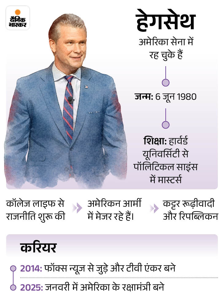 पीट हेगसेथ को डोनाल्ड ट्रम्प ने जनवरी 2025 में रक्षामंत्री बनाया। वे इससे पहले अमेरिकी सेना में सैनिक और न्यूज एंकर रहे चुके हैं। (फाइल फोटो)