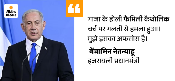 गाजा के कैथोलिक चर्च पर इजराइली हमला, 3 की मौत: नेतन्याहू ने अफसोस जताया, कहा- गलती से गोला चर्च पर गिरा