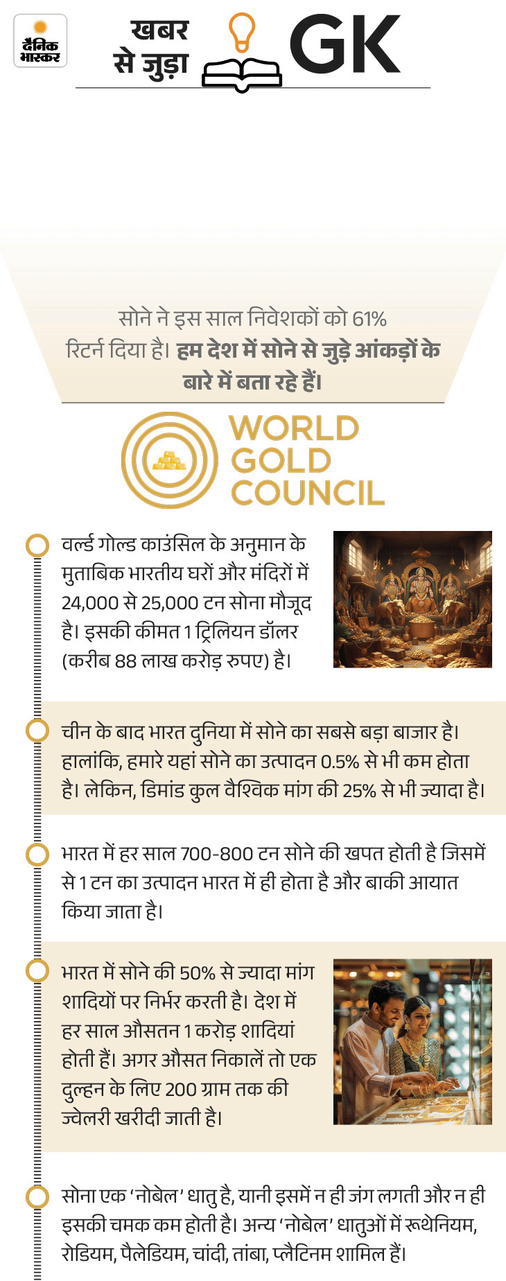 - इस साल अब तक सोने की कीमत 52,095 रुपए बढ़ी है। 31 दिसंबर 2024 को 10 ग्राम 24 कैरेट सोना 76,162 रुपए का था, जो अब 1,28,257 रुपए हो गया है।