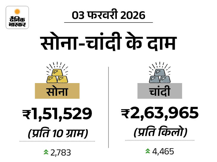 गोल्ड और सिल्वर मार्केट में लगातार तीन दिन की गिरावट के बाद 3 फरवरी को तेजी रही। वायदा बाजार (MCX) में चांदी के दाम में करीब 32 हजार रुपए (13%) की बढ़त है। 1 किलो चांदी का भाव 2.68 लाख रुपए पर पहुंच गया है।