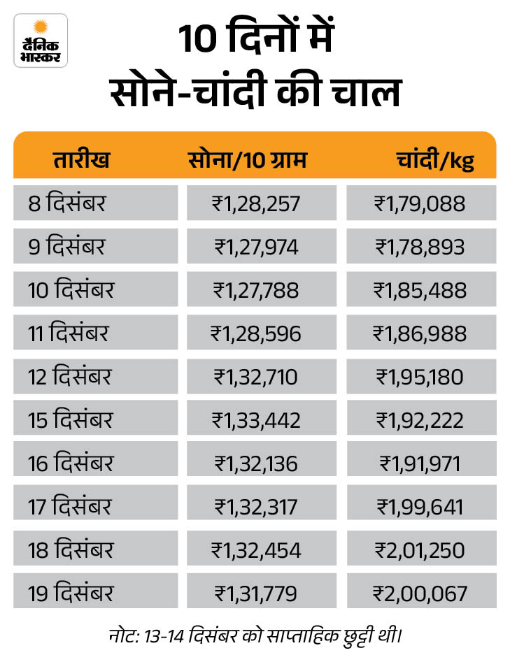 गुरुवार को इसकी कीमत 1,32,474 रुपए प्रति 10 ग्राम थी। इससे पहले 15 दिसंबर को सोने की कीमत 1,33,249 रुपए के अपने अब तक के सबसे ऊंचे स्तर पर थी।