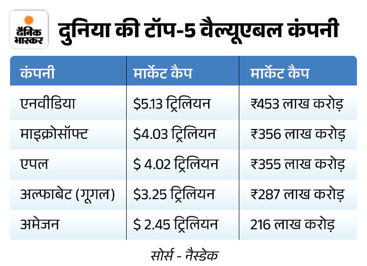 Source: https://www.bhaskar.com/business/news/nvidias-market-value-surpasses-5-trillion-for-the-first-time-136284488.html