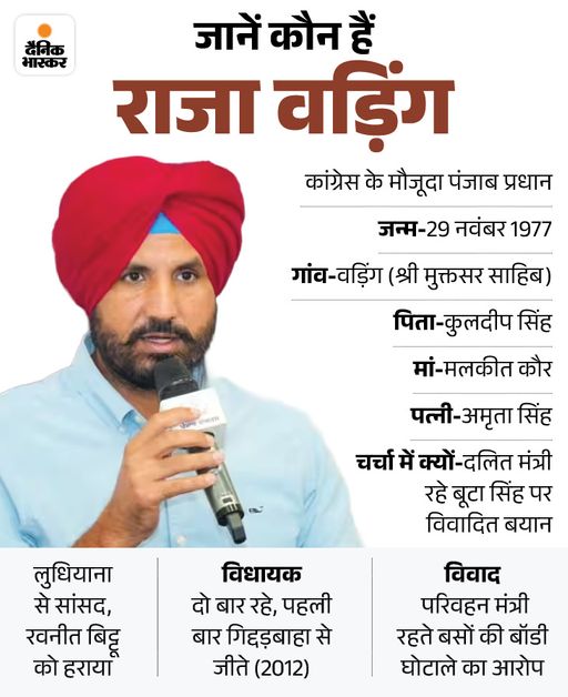 तरनतारन उपचुनाव में प्रचार के दौरान कांग्रेस का महिमामंडन करने की कोशिश में वड़िंग ने दलित बिरादरी से ताल्लुक रखने वाले पूर्व केंद्रीय गृहमंत्री स्वर्गीय बूटा सिंह को लेकर एक टिप्पणी की थी।