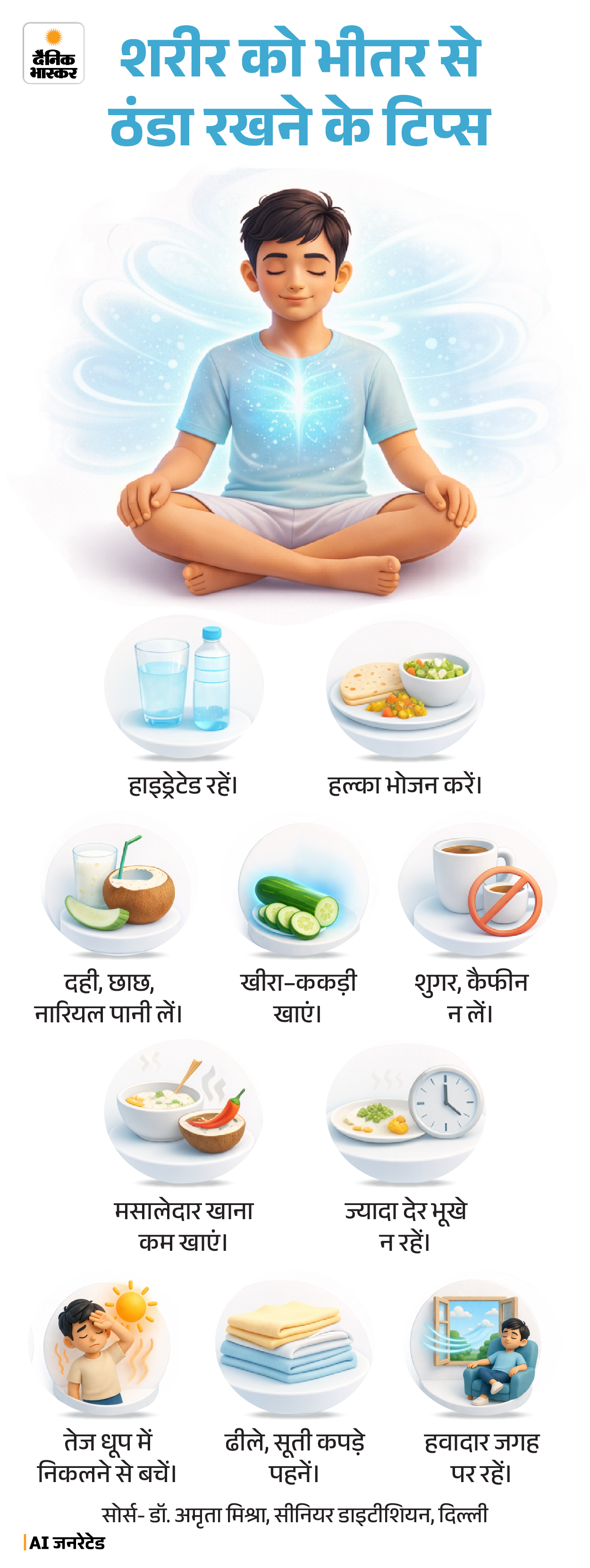 कुल मिलाकर, शरीर को ठंडा रखने का मतलब सिर्फ ठंडी चीजें खाना नहीं है। सही खानपान, पर्याप्त पानी और संतुलित लाइफस्टाइल भी जरूरी है।
