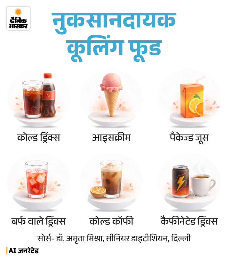 जवाब- जो भी चीजें ठंडी लगती हैं, उसे हम ‘कूलिंग’ मान लेते हैं। लेकिन हर ठंडी चीज शरीर को अंदर से ठंडा नहीं करती। कुछ चीजें नुकसान भी पहुंचाती हैं। ग्राफिक में देखिए-