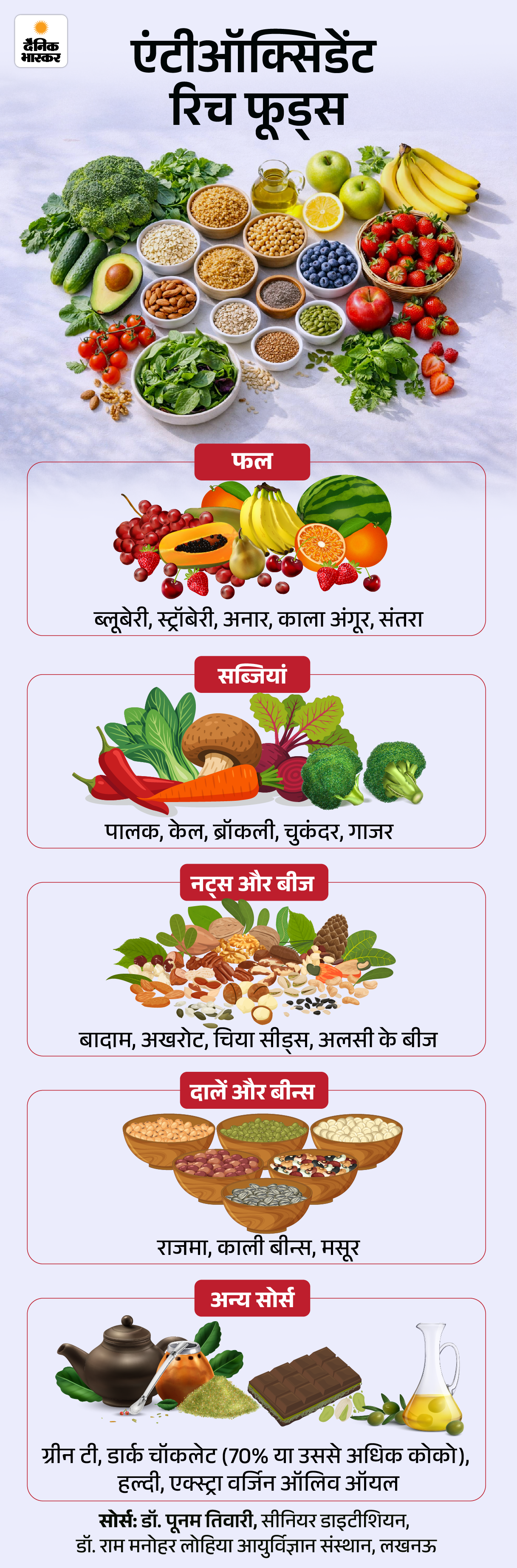 कुल मिलाकर, एंटीऑक्सिडेंट रिच फूड कोई ट्रेंड नहीं, बल्कि साइंस-बेस्ड हेल्थ स्ट्रैटेजी है। हार्ट हेल्थ बेहतर रखनी हो, इम्यूनिटी मजबूत करनी हो या उम्र बढ़ने की रफ्तार को संतुलित रखना हो, तो रंगीन और नेचुरल डाइट अहम भूमिका निभाती है।