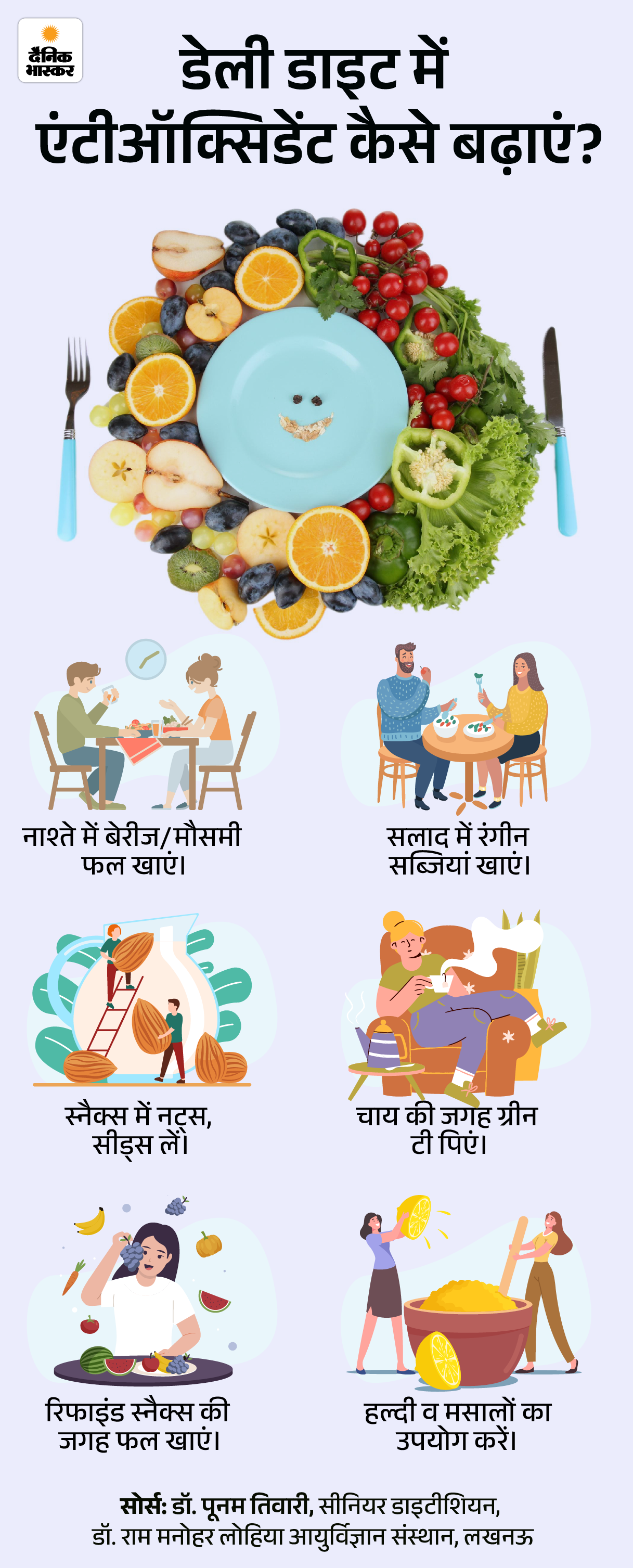 - फ्री रेडिकल्स यानी ऐसे अनस्टेबल मॉलिक्यूल, जो शरीर की कोशिकाओं को डैमेज करते हैं।