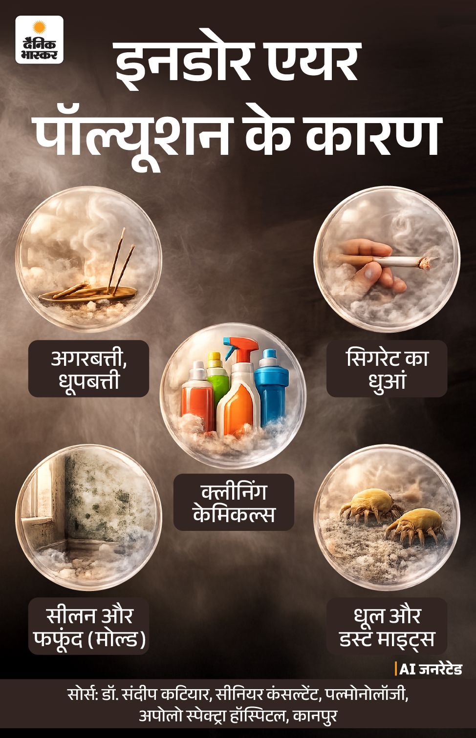 सवाल- गैस के अलावा इनडोर एयर किन कारणों से प्रदूषित होती है?