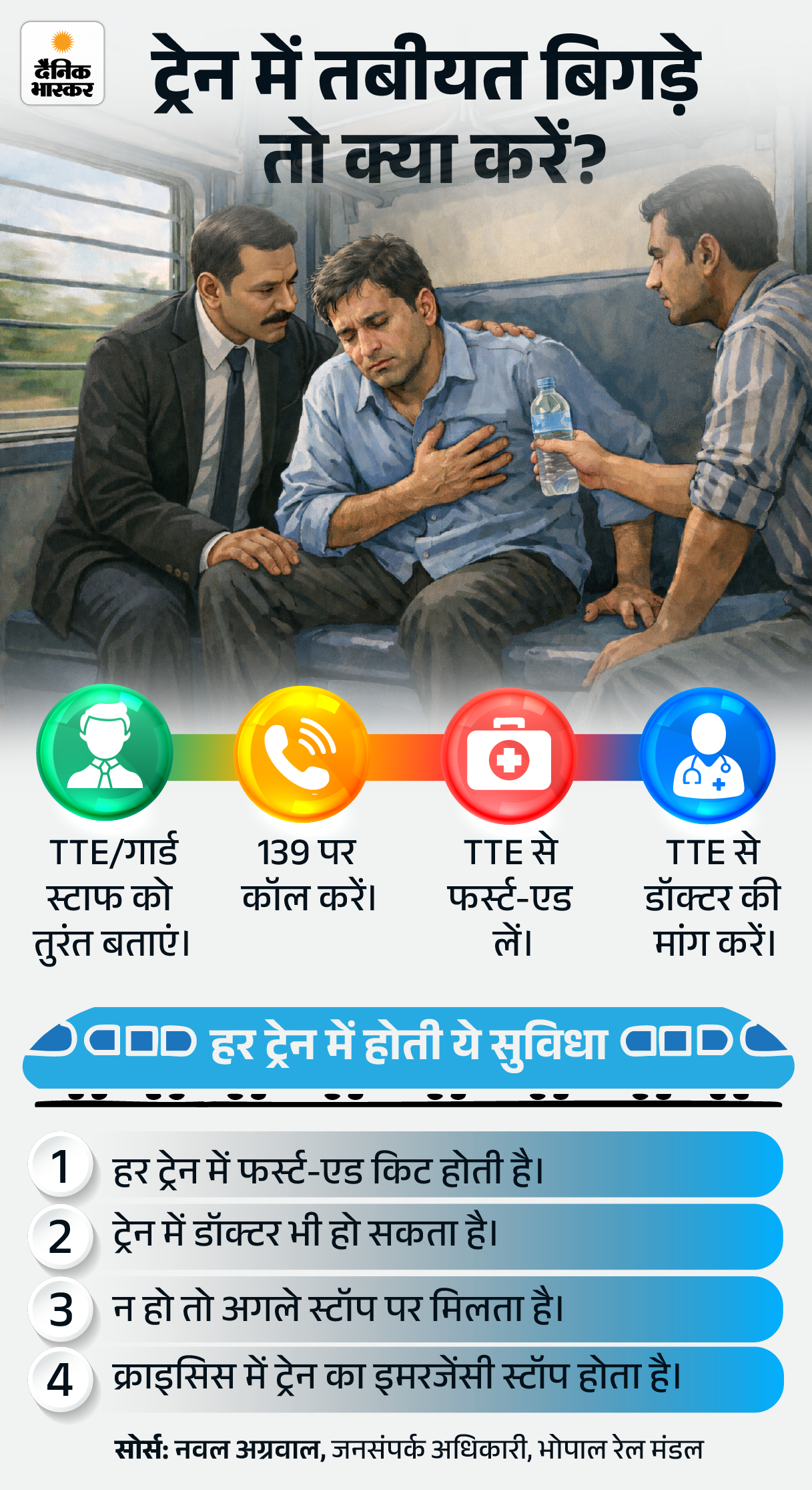 जरूरत की खबर- ट्रेन में तबीयत बिगड़े तो क्या करें?: 5 तरीकों से मांगें मदद, हर ट्रेन में होती ये सुविधाएं, सेफ यात्रा के 10 टिप्स