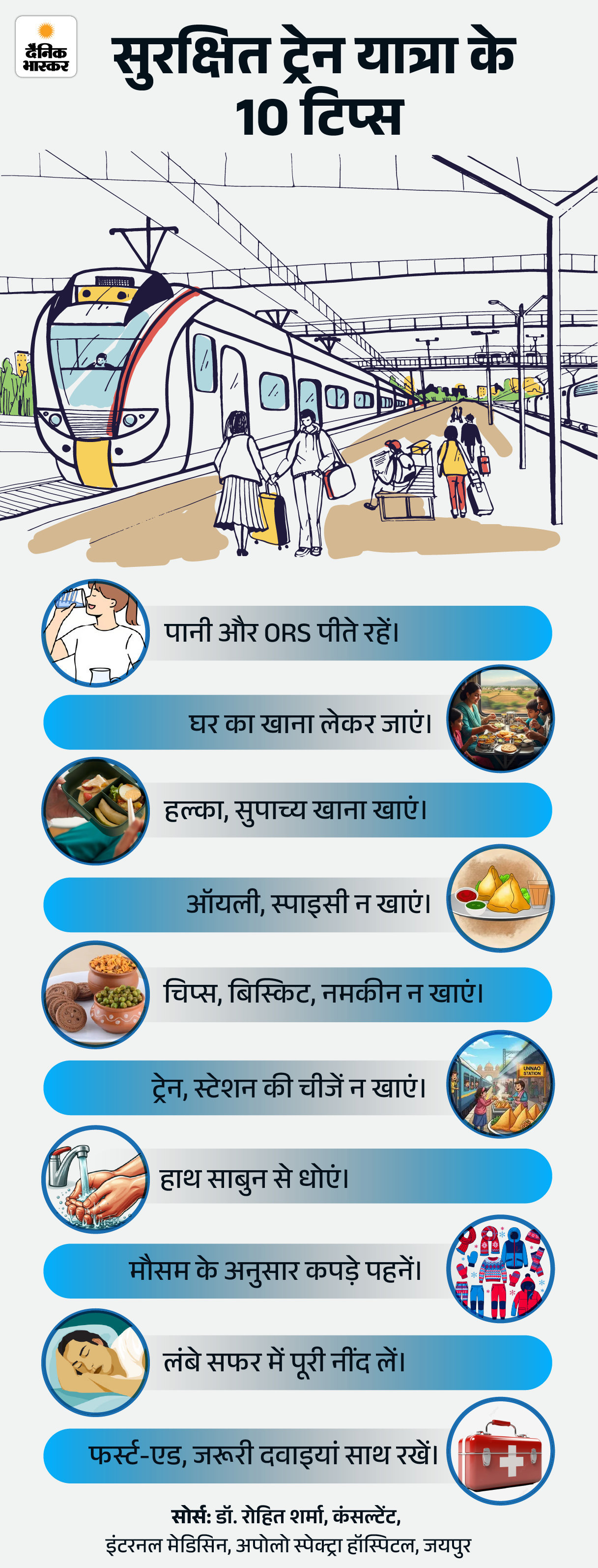 सवाल- ट्रेन में यात्रा के दौरान बीमार न पड़ें, इसके लिए किन बातों का ध्यान रखना चाहिए?