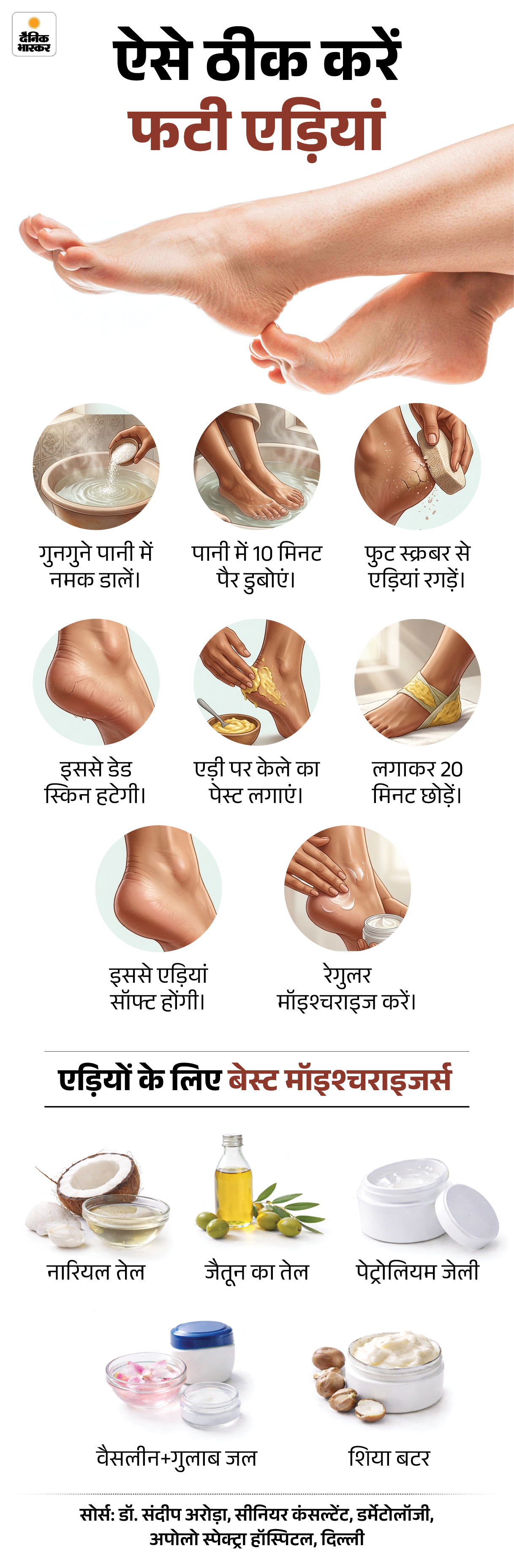 तो चलिए, आज जरूरत की खबर में हम क्रैक्ड हील्स यानी फटी एड़ियों के बारे में विस्तार से बात करेंगे। साथ ही जानेंगे कि-