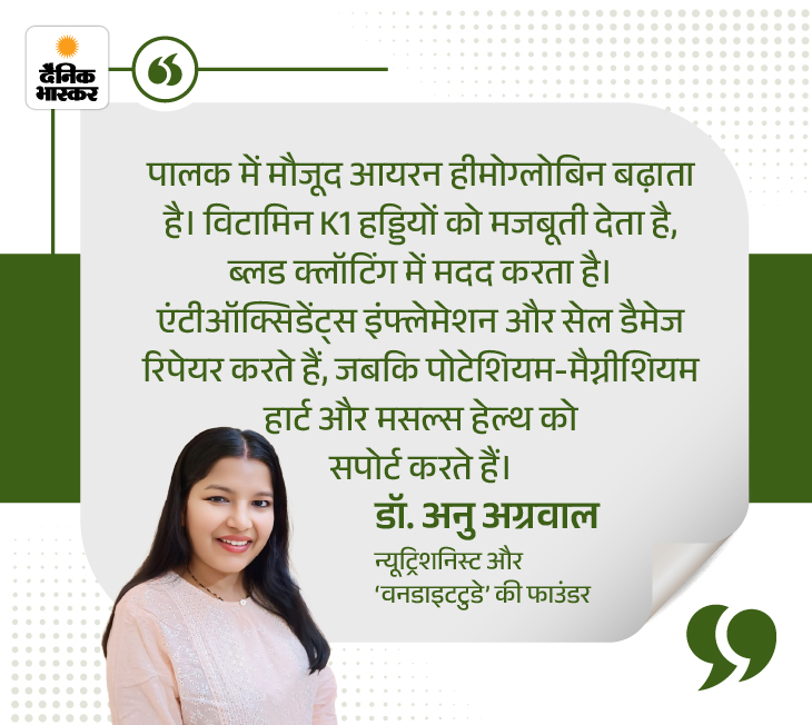 जरूरत की खबर- 100 ग्राम पालक में 310% विटामिन A: न्यूट्रिशनिस्ट से जानें पालक के 10 हेल्थ बेनिफिट्स, साथ ही किसे नहीं खाना चाहिए