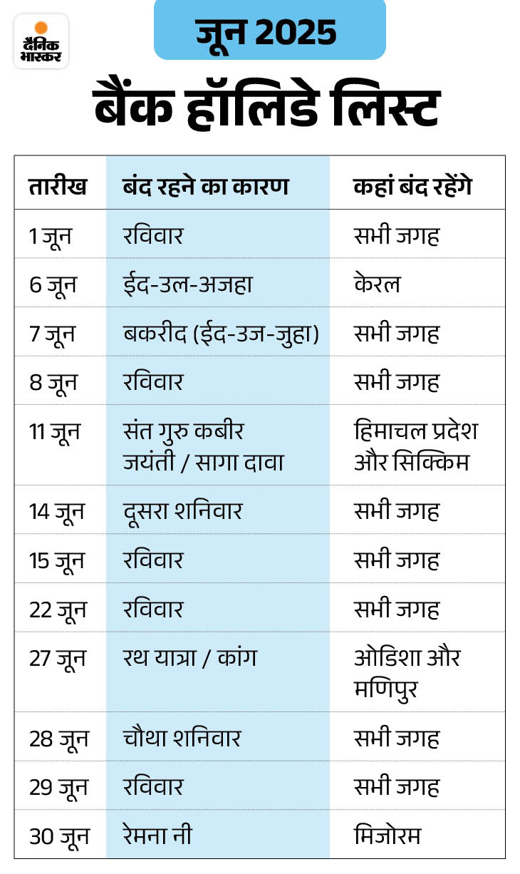 Source: https://www.bhaskar.com/business/news/bank-holidays-june-2025-bakra-eid-saturday-sunday-weekly-off-135119011.html
