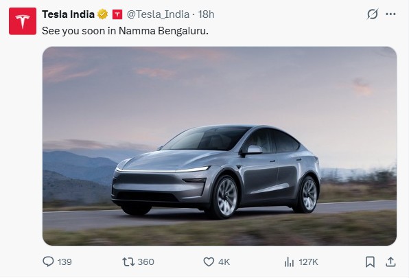 लोग X पर काफी एक्साइटेड हैं। एक यूजर ने लिखा, ‘वेलकम टू नम्मा बेंगलुरु’। दूसरे यूजर ने कहा, ‘बेंगलुरु में वेल्दी टेस्ला फैन बेस है, यह बहुत शानदार होने वाला है।