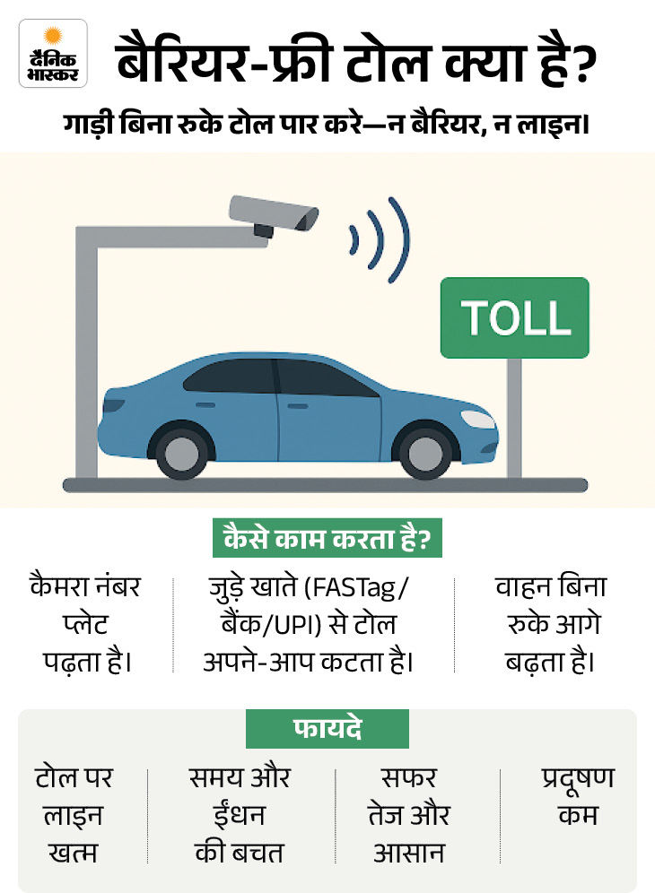 इससे टोल प्लाजा पर लगने वाली लंबी कतारें खत्म हो जाएंगी और ईंधन की बचत होगी। चूंकि बिना बैरियर के टोल वसूली में कोई गाड़ी को मौके पर रोक नहीं पाएगा, इसलिए सरकार ने इसे गाड़ी के कागजों (NOC और फिटनेस) से जोड़ दिया है ताकि लोग खुद ही समय पर भुगतान करें।
