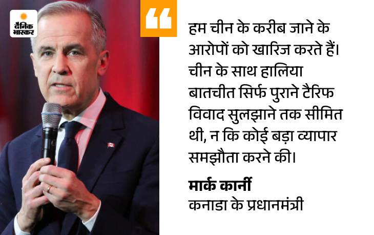 कार्नी का यह बयान अमेरिकी राष्ट्रपति ट्रम्प की कड़ी चेतावनी के एक दिन बाद आया है। ट्रम्प ने कहा था कि अगर कनाडा चीन के साथ मुक्त व्यापार समझौता करता है तो कनाडाई सामानों पर 100% टैरिफ लगा दिया जाएगा।