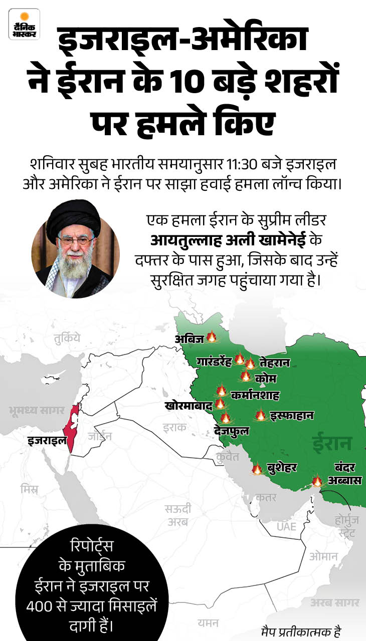 ईरान के एक स्कूल पर मिसाइल गिरने से 85 छात्राओं की मौत हो गई, जबकि 45 घायल हैं। इजराइल और अमेरिका ने ईरान पर किए हमले में 10 बड़े शहरों को निशाना बनाया।