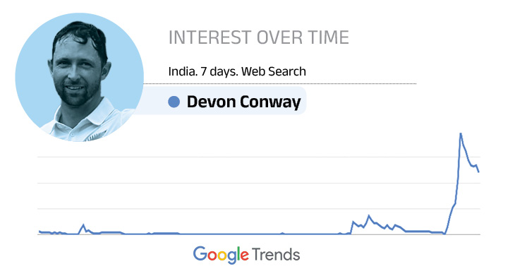 शतकीय पारी खेलने के बाद डेवोन कॉन्वे गूगल में ट्रेंड पर आ गए हैं। उन्हें पिछले एक हफ्ते में खूब सर्च किया गया है। देखें गूगल ट्रेंड