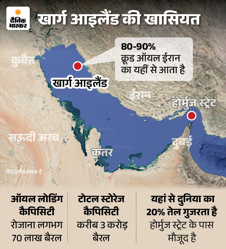 अमेरिका और इजरायल ने ईरान के कई सैन्य ठिकानों और न्यूक्लियर फैसिलिटी को निशाना बनाया है, लेकिन खार्ग आइलैंड को अब तक सीधे हमला करके निशाना नहीं बनाया गया।