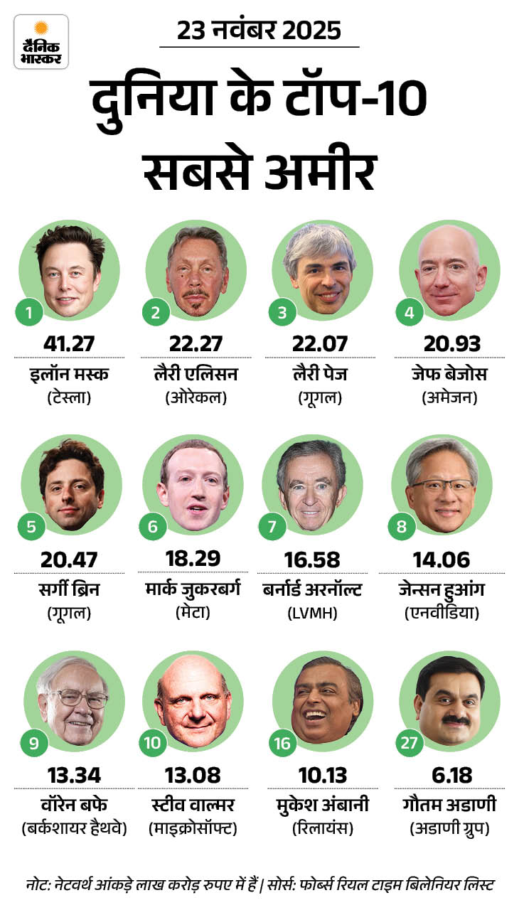 कल दुनिया के टॉप-10 सबसे अमीर कौन रहे यह भी देख लीजिए…