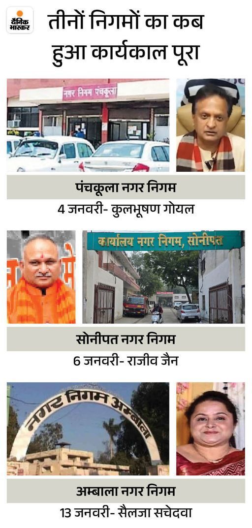 नगर निगम चुनाव के लिए निकले ड्रा के अनुसार अंबाला को महिला बीसी-B के लिए रिजर्व किया गया, जबकि पंचकूला और सोनीपत की सीट अनारक्षित रहेगी। तीनों नगर निगमों के मेयर और पार्षदों का कार्यकाल समाप्त हो चुका है। खास बात ये है कि हरियाणा में बीसी-बी की महिला के लिए पहली बार मेयर पद आरक्षित हुआ है।