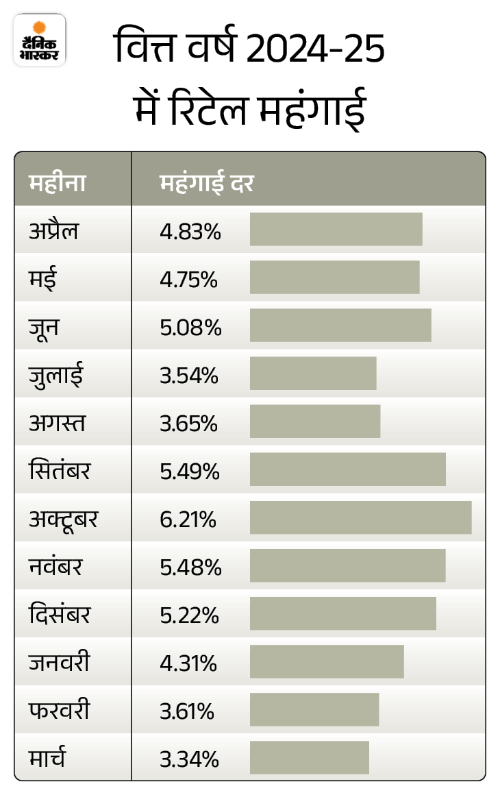 अक्टूबर में रिटेल महंगाई 0.25% के रिकॉर्ड निचले स्तर पर आ गई थी। इसका कारण खाने-पीने की चीजों की कीमतों में कमी थी। ये वर्तमान CPI सीरीज में अब तक की सबसे कम महंगाई थी। यानी, ये करीब 14 साल का निचला स्तर रहा था। इससे पहले सितंबर में ये 1.44% पर थी।