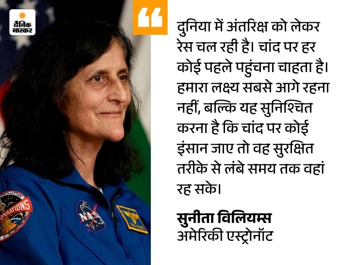 सुनीता पिछले महीने भारत दौरे पर आईं थीं। उन्होंने दिल्ली के अमेरिकन सेंटर में ‘आंखें सितारों पर, पैर जमीं पर’ सेमिनार में हिस्सा भी लिया था। उन्होंने यह भी कहा कि यह काम सबके फायदे, सहयोग और पारदर्शिता के साथ, लोकतांत्रिक तरीके से किया जाना चाहिए, ताकि किसी एक देश का दबदबा न हो और पूरी मानवता को इसका लाभ मिले।