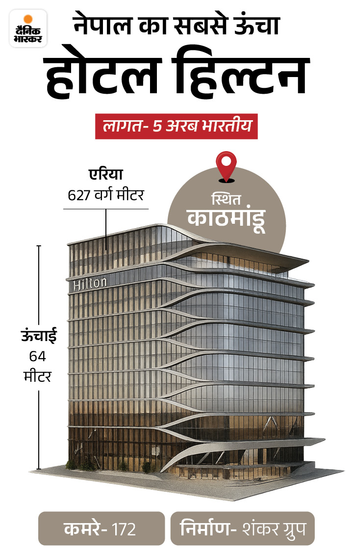 नेपाल में मंगलवार को हुई हिंसा में प्रदर्शनकारियों ने काठमांडू के सबसे ऊंचे हिल्टन होटल में आग लगा दी थी। यह होटल पिछले साल जुलाई में बनकर तैयार हुई थी। इसमें 5 अरब भारतीय रुपए खर्च हुए थे।