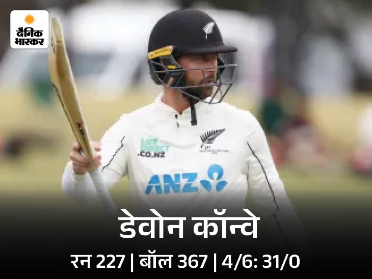 न्यूजीलैंड ने 575/8 पर पहली पारी डिक्लेयर की: कॉन्वे का दूसरा दोहरा शतक; दूसरे दिन वेस्टइंडीज का स्कोर 110/0