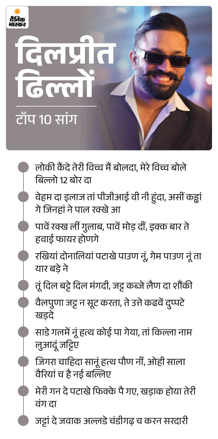 गुंडे एल्बम से मिली म्यूजिक इंडस्ट्री में पहचान दिलप्रीत ढिल्लों पंजाब के जिला पटियाला के फतेहगढ़ साहिब के रहने वाले हैं। ढिल्लों ने 2014 में पहली बार पंजाबी म्यूजिक इंडस्ट्री में गुंडे एल्बम से जगह बनाई। इस एल्बम के हिट होने पर गुंडे -2 निकाली। बदमाशी वाले गीत गाने के चलिए ढिल्लों आलोचना के भी शिकार हुए। अंबर धालीवाल से 2018 में शादी, विवाद रहे चंडीगढ़ में दिलप्रीत ढिल्लों ने अंबर धालीवाल से 2018 में शादी की थी। 2020 में उनके बीच विवाद सामने आए थे। पत्नी ने घरेलू हिंसा के आरोप लगाए, लेकिन दिलप्रीत ने इन आरोपों को गलत बताया और सिरे से नकार दिया था। इसके बाद फिर से पति-पत्नी के बीच कोई विवाद सार्वजनिक मंच पर नहीं आया। दोनों के बीच तलाक की भी बात सामने आई थी हालांकि सिंगर ने पारिवारिक मसले को कभी सार्वजनिक नहीं किया। म्यूजिक इंडस्ट्री में रहते हुए ढिल्लों कई बार विवादों का शिकार हुए। ढिल्लों ने फिल्मों में अपना लक आजमाया और 2016 में वन्स अपॉन ए टाइम इन अमृतसर से एक्टिंग की शुरुआत की।