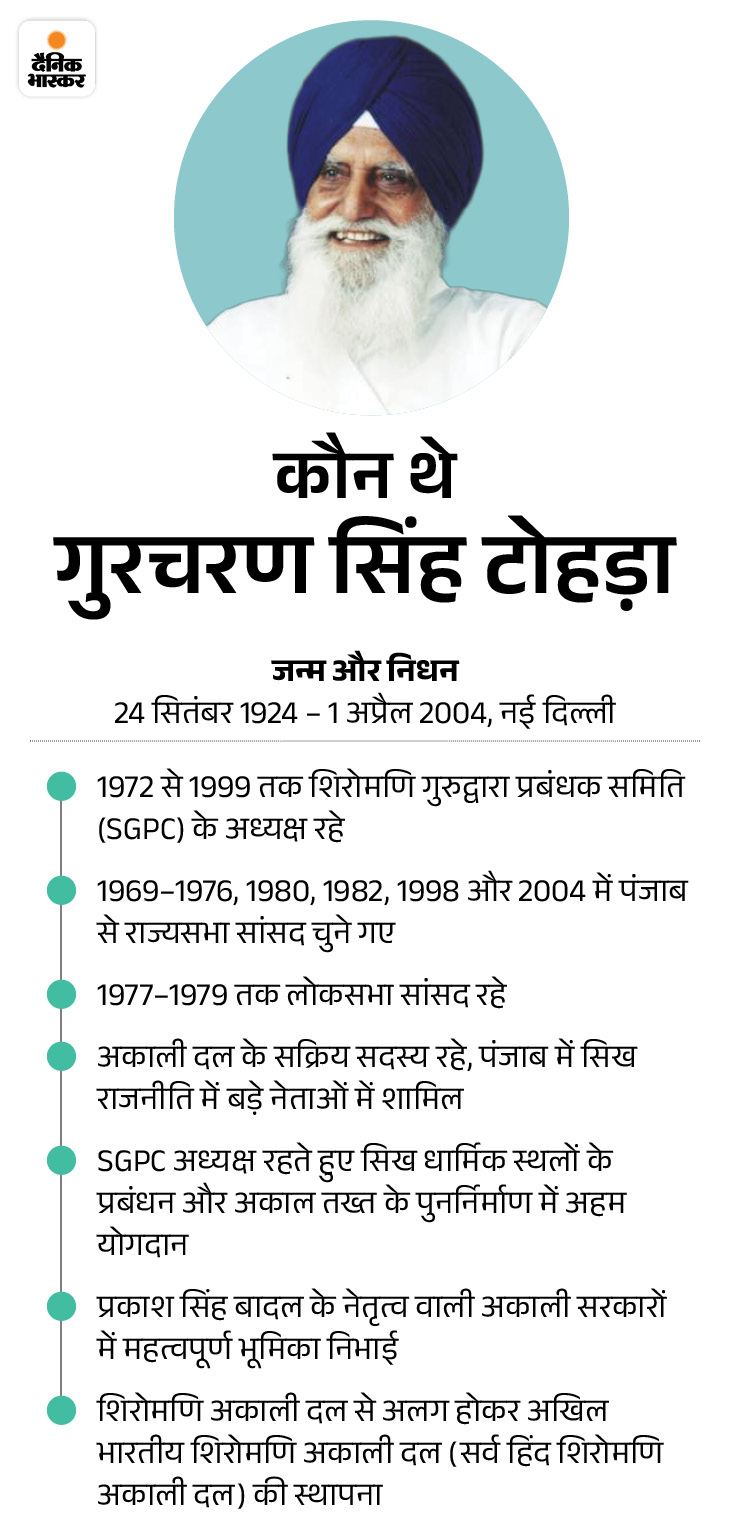 टोहड़ा ने कहा था- लोग सुखबीर बादल का घमंड तोड़ देंगे हरमेल सिंह टोहड़ा पंजाब की राजनीति में लंबे समय से सक्रिय रहे। उन्होंने पटियाला देहाती के इंचार्ज पद से हटाए जाने के बाद शिरोमणि अकाली दल के खिलाफ मोर्चा खोला और पार्टी में अपने परिवार सहित विरोध की स्थिति अपनाई थी।