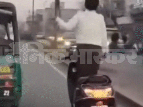 लुधियाना में चलती स्कूटी पर महिला का स्टंट करने का वीडियो सामने आया है। यहां ताजपुर रोड पर दयाल पब्लिक स्कूल के पास ट्रैफिक के बीच महिला अपनी स्कूटी पर स्टंट करती नजर आई। कभी वह चलती स्कूटी पर खड़ी हुई तो कभी हैंडल छोड़कर डांस करने लगी। इस बीच PCR गाड़ी के सामने भी महिला खड़ी होकर स्कूटी चलाती रही। पीछे चल रही कार में सवार व्यक्ति ने इसका वीडियो बना लिया। एक दिन पहले ही ये वीडियो इंस्टाग्राम पर वायरल हुआ। (पढ़ें पूरी खबर)