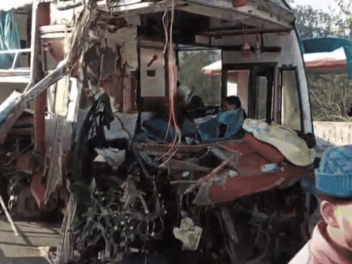 6. टूरिस्ट बस-ट्रक की टक्कर, ड्राइवर की टांगें टूटीं