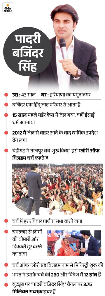 बजिंदर सिंह पर महिला से यौन उत्पीड़न का मामला चल रहा है। महिला ने पुलिस से कहा था कि ताजपुर गांव में ‘द चर्च ऑफ ग्लोरी एंड विस्डम’ के पादरी बजिंदर सिंह ने जालंधर में उसके साथ गलत हरकतें की।