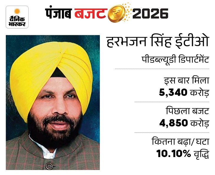 मंत्री बलबीर सिंह के हेल्थ डिपार्टमेंट के लिए 6 हजार 210 करोड़ का प्रावधान किया गया है। वहीं ग्रामीण विकास और पंचायत विभागों के लिए मंत्री तरुण प्रीत सौंध को लगभग 4 हजार 440 करोड़ और पीडब्ल्यूडी के लिए मंत्री हरभजन सिंह ईटीओ को करीब 5 हजार 340 करोड़ का बजट मिला है।