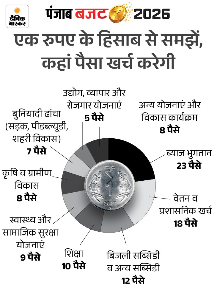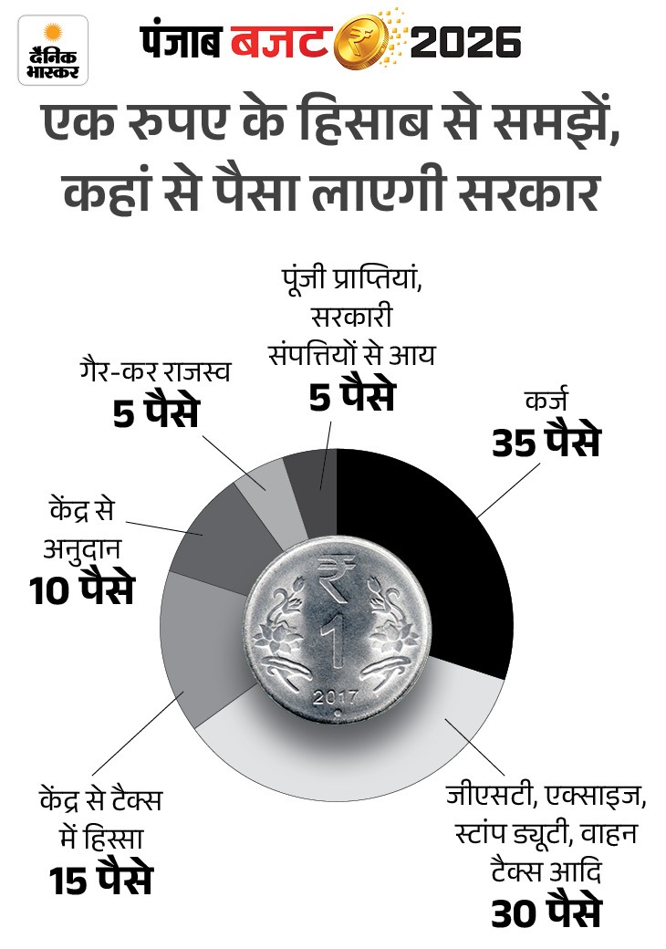 पंजाब सरकार के बजट के आंकड़ों ने अगर आपका दिमाग चकरा दिया है और ये आंकड़े आपकी समझ से बाहर हैं तो हम आपको इन्हें आसान भाषा में समझा देते हैं। पंजाब सरकार के 2026-27 के बजट को यदि एक रुपए के हिसाब से समझा जाए तो राज्य की वित्तीय तस्वीर साफ दिखाई देती है।