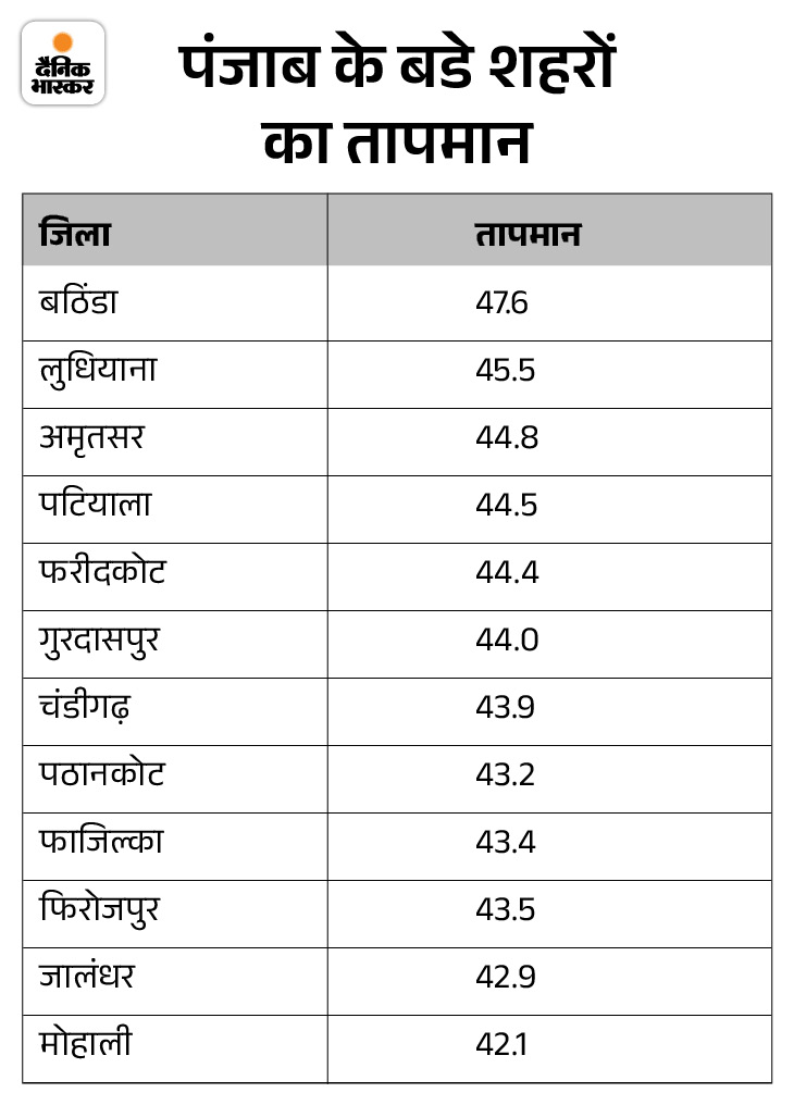 पंजाब में तापमान 47 डिग्री के पार: 13 साल में सबसे ज्यादा पारा, आज 18 जिलों में लू का अलर्ट, बिजली की मांग बढ़ी – Punjab News