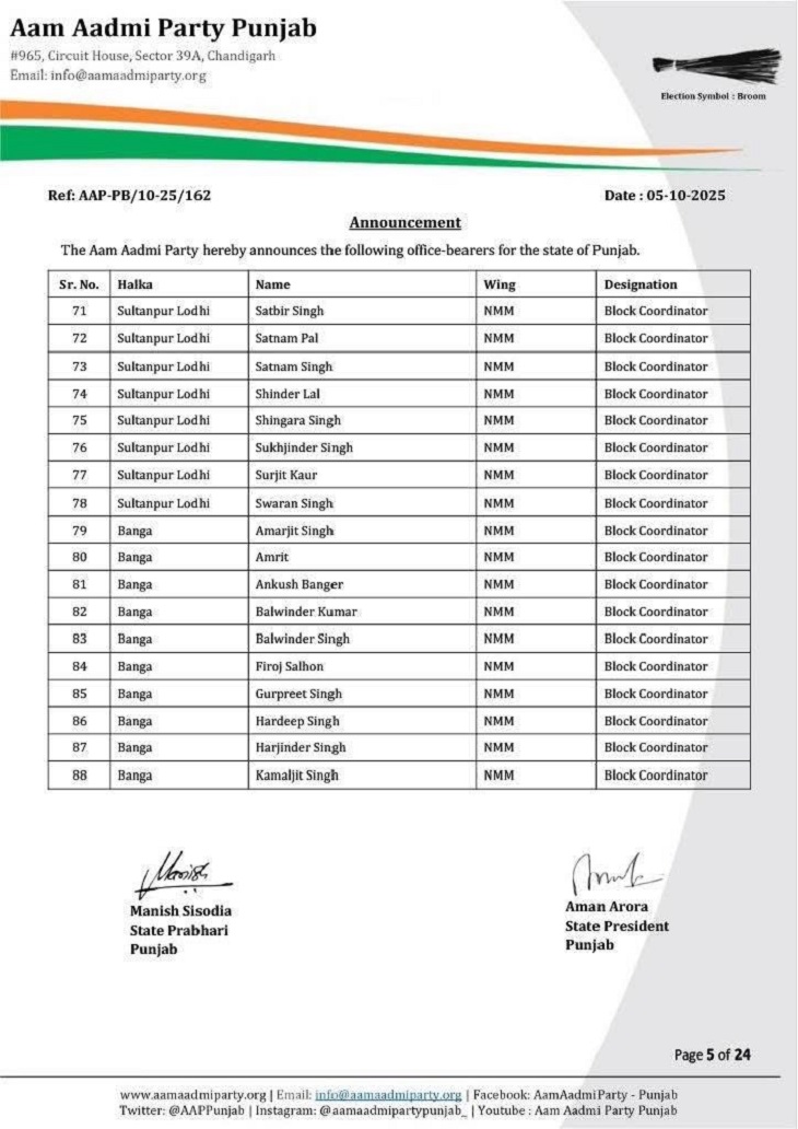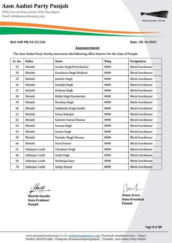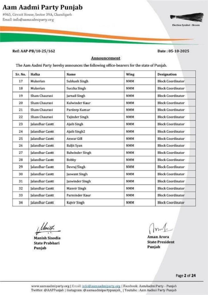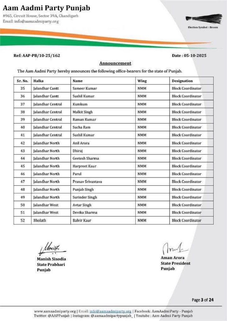 पार्टी की तरफ से 427 लोगों की जंबो सूची जारी की है। पार्टी प्रधान अमन अरोड़ा ने खुद इसकी जानकारी दी है। वहीं, इस चीज को 2027 के चुनाव से भी जोड़कर देख जा रहा है। पार्टी इस बहाने इन लोगों को जोड़ने में जुटी हुई है।