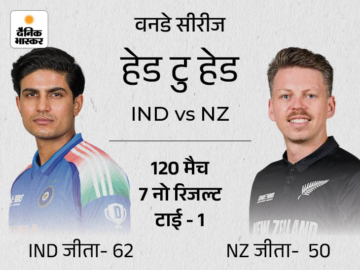 भारत और न्यूजीलैंड के बीच अब तक 120 वनडे खेले गए। 62 में भारत और 50 मे न्यूजीलैंड को जीत मिली। 7 बेनतीजा रहे, वहीं 2014 में एक मैच टाई भी रहा। भारत में दोनों ने 40 वनडे खेले, 31 में टीम इंडिया और महज 8 में कीवी टीम ने बाजी मारी। एक मुकाबला बेनतीजा भी रहा।