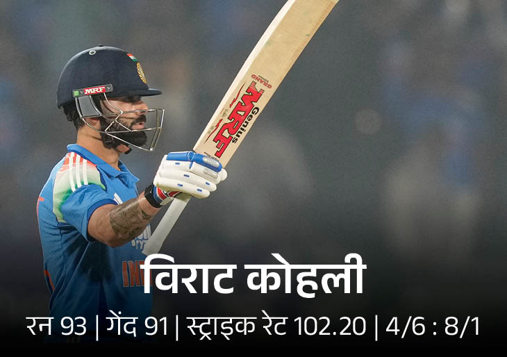 विराट कोहली ने 93 रनों की पारी खेली। उन्हें प्लेयर ऑफ द मैच चुना गया।