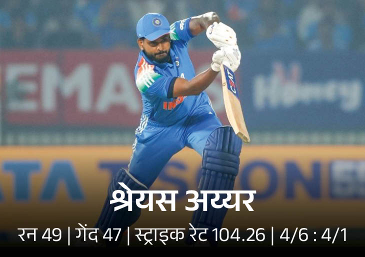 भारतीय टीम ने 49वें ओवर में 301 रन का टारगेट चेज कर लिया। केएल राहुल ने क्रिस्टियन क्लार्क की आखिरी 3 बॉल पर दो चौके और एक छक्का लगाया। उन्होंने नाबाद 29 रन की पारी खेली। हर्षित राणा ने भी 29 रन का योगदान दिया।
